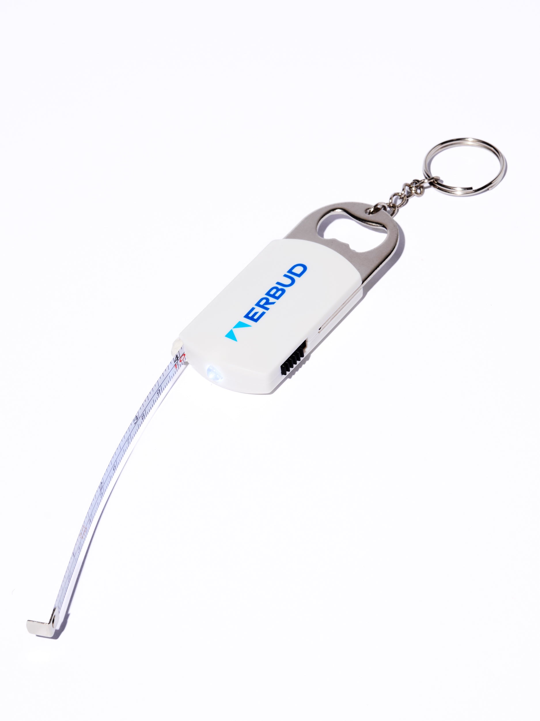 Niewielka miarka w formie breloka, praktyczne narzędzie zawsze pod ręką na każdej budowie.